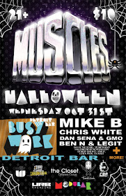 My buddy Dan Sena is a good DJ and a good promoter (he's also got some production in the works!) He throws a weekly in OC called Busy Work at Detroit Bar on Wednesdays. Lucky for us all, Halloween fell on a Wednesday this year and he is having me as a guest, along with a great new addition to the frightfully impressive Modular label: Muscles! His new album, Guns Babes Lemonade, has been getting a lot of love in my car lately, particularly the tracks Sweaty* and Futurekidz. Check it out!